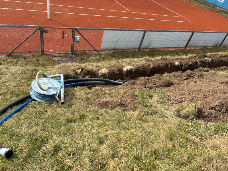 Nach den winterlichen Temperaturen und dem lange gefrorenen Boden ist es nun endlich so weit: Beim Tennisverein Geislingen haben die Reparaturarbeiten an der Beregnungsanlage begonnen. Sobald der Boden aufgetaut war, konnte mit dem Aushub gestartet werden. In den vergangenen Tagen wurden die ersten Leitungsabschnitte freigelegt, sodass die notwendigen Instandsetzungsmaßnahmen zügig umgesetzt werden konnten. Die Arbeiten sind bereits gut vorangeschritten und verlaufen